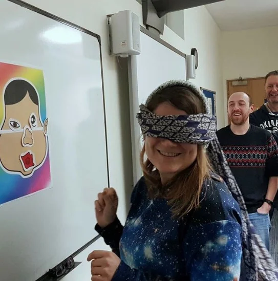 We started the year off in class by playing 福笑い fukuwarai, or “Lucky Laugh”. Blindfolded students have to listen to instructions given by their classmates (in Japanese, of course). The funnier the face is, the more laughter you’ll have throughout the year: